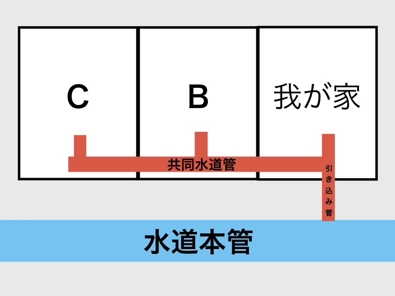 共同水道管とは、複数の住宅で1本の水道管を共有して使う配管のことです。